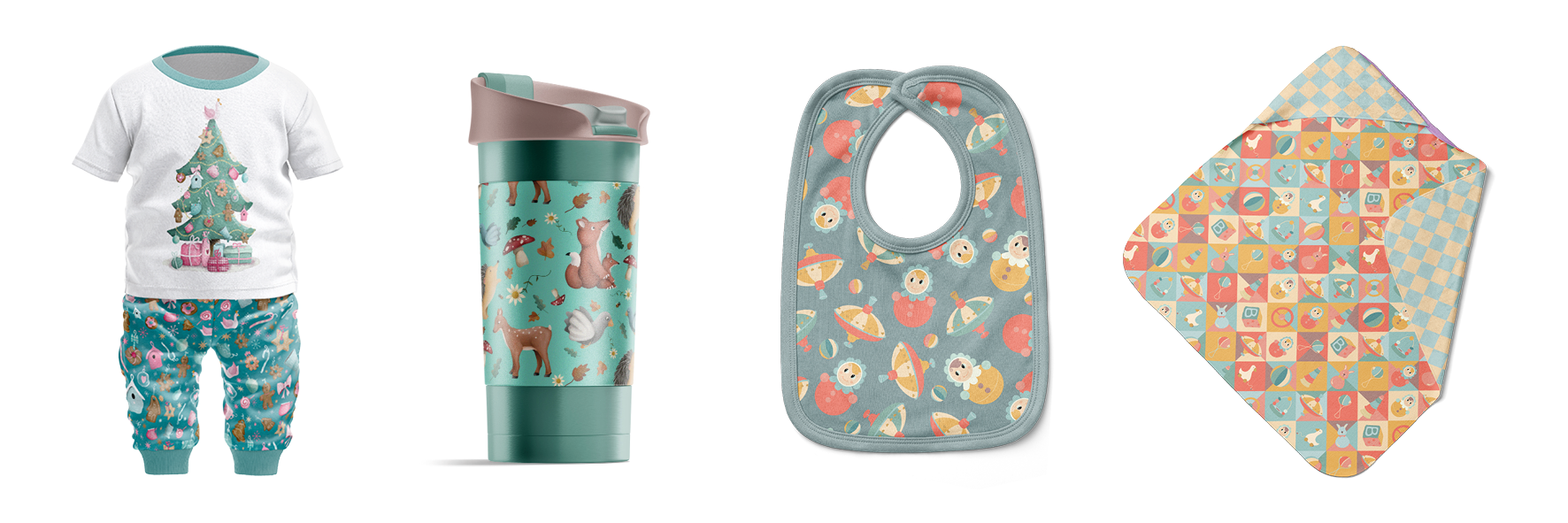Kids’ surface patterns for fashion, nursery decor, gift-ware, and beyond